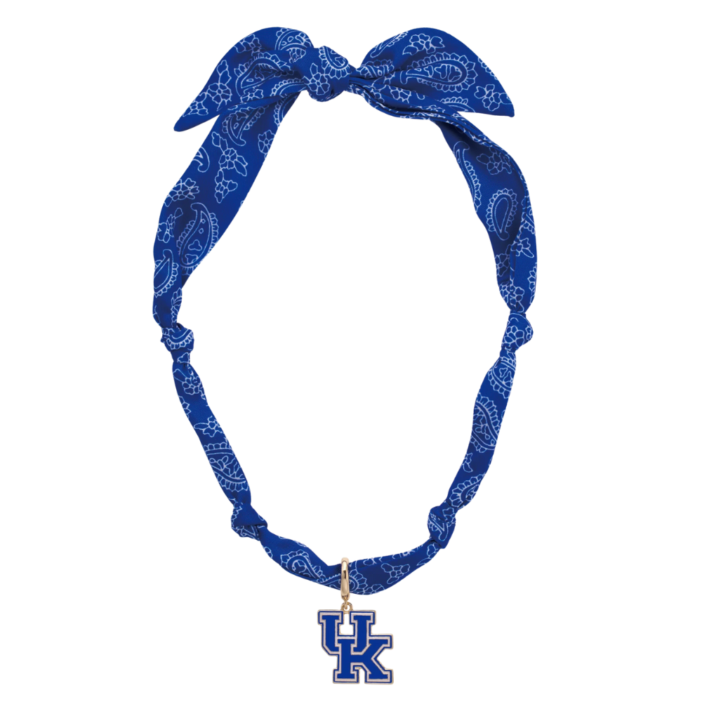 Elevate your game day look with the Kentucky Wildcats Mascot Bandana Scarf Necklace—a stylish blend of school spirit and modern design. The soft blue bandana scarf lays comfortably against the neck, while the gold-plated Wildcat logo pendant adds a polished touch of shine. Crafted with 18K triple plating, the pendant keeps its brilliance game after game. At 16″ in length, it’s a flattering fit that complements both casual and dressed-up outfits. Officially NCAA licensed, it’s a genuine piece of Kentucky pride you can wear anywhere. From cheering on the sidelines to celebrating downtown, it’s a subtle yet striking nod to the Big Blue Nation. Treat yourself or another fan to a must-have accessory that’s as spirited as it is stylish.