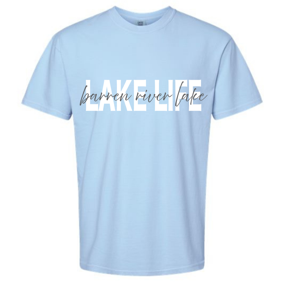 Let everyone know where your heart belongs with this stylish Barren River Lake Life Comfort Colors T-Shirt. Featuring bold white “LAKE LIFE” lettering front and center, with a simple “Barren River Lake” written across in, it’s the perfect balance of lake-day energy and laid-back charm. This design speaks volumes—showing off your love for the water in a way that feels both modern and timeless. Made with Comfort Colors’ signature soft-washed cotton, it feels like your favorite tee from the very first wear. Whether you're casting a line, watching the sunset, or cruising across the water, this shirt belongs in every lake lover’s weekend rotation. Wherever the season takes you, this tee keeps your lake spirit right where it belongs: close to the heart.