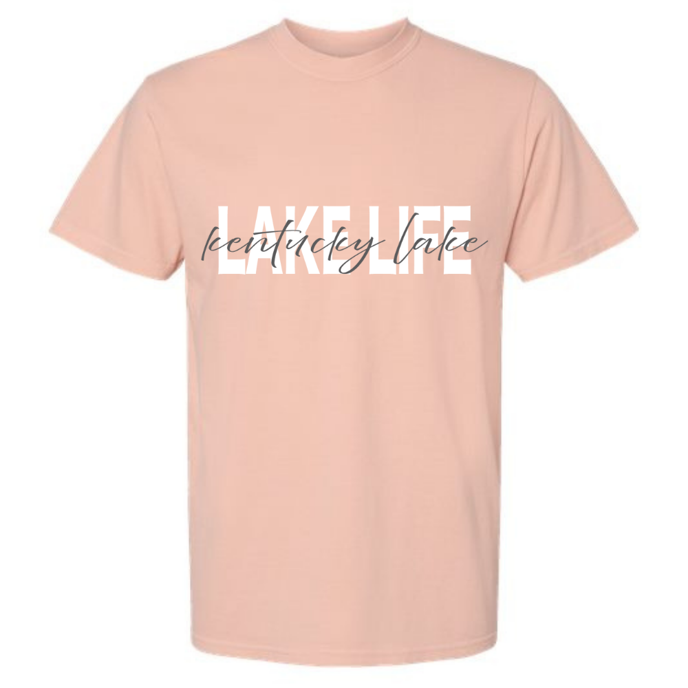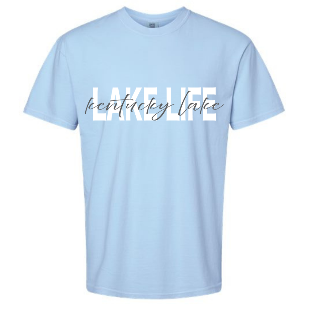 Let everyone know where your heart belongs with this stylish Kentucky Lake Life Comfort Colors T-Shirt. Featuring bold white “LAKE LIFE” lettering front and center, with a simple “Kentucky Lake” written across in, it’s the perfect balance of lake-day energy and laid-back charm. This design speaks volumes—showing off your love for the water in a way that feels both modern and timeless. Made with Comfort Colors’ signature soft-washed cotton, it feels like your favorite tee from the very first wear. Whether you're casting a line, watching the sunset, or cruising across the water, this shirt belongs in every lake lover’s weekend rotation. Wherever the season takes you, this tee keeps your lake spirit right where it belongs: close to the heart.