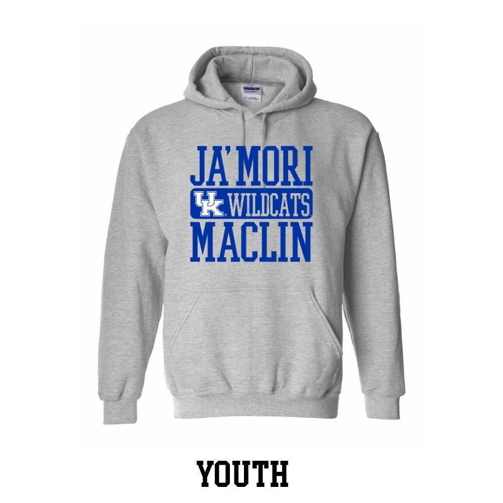 Elevate your game day wardrobe with the Ja'Mori Maclin Hardcourt Hoodie, a tribute to one of Kentucky football’s wide receivers. This hoodie combines an Officially Licensed UK design with Ja'Mori Maclin focus, making it a perfect addition for any Wildcats fan. Made from a 50/50 cotton/polyester blend, the Ja'Mori Maclin Hardcourt Hoodie offers a comfortable fit that’s ideal for cheering him on at Kroger Field or showing off your UK pride around town.