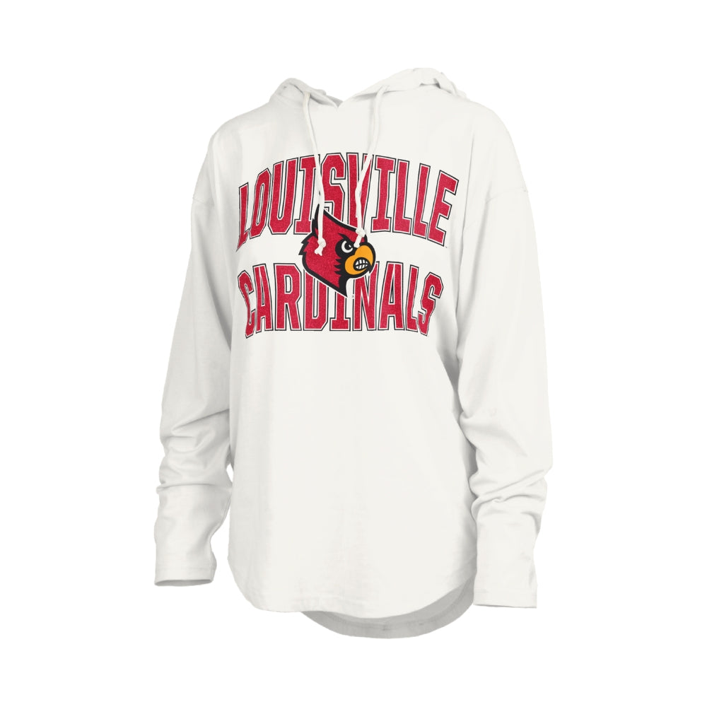 Rep your Cards pride in style with the Louisville Cardinals Glitter San Bruno Jersey Top! This hooded jersey top features the iconic Cardinal mascot and bold Louisville Cardinals. Crafted from soft, durable fabric, it ensures comfort while keeping you stylish, whether you’re at a tailgate, game day, or out with friends. The relaxed fit provides a laid-back, sporty look that’s easy to pair with jeans, shorts, or leggings. The vintage-inspired design gives it a timeless appeal, while the modern San Bruno style keeps it fresh. Show your Cardinals spirit in a top that combines comfort, style, and history. This jersey is the perfect way to represent your team with pride!
