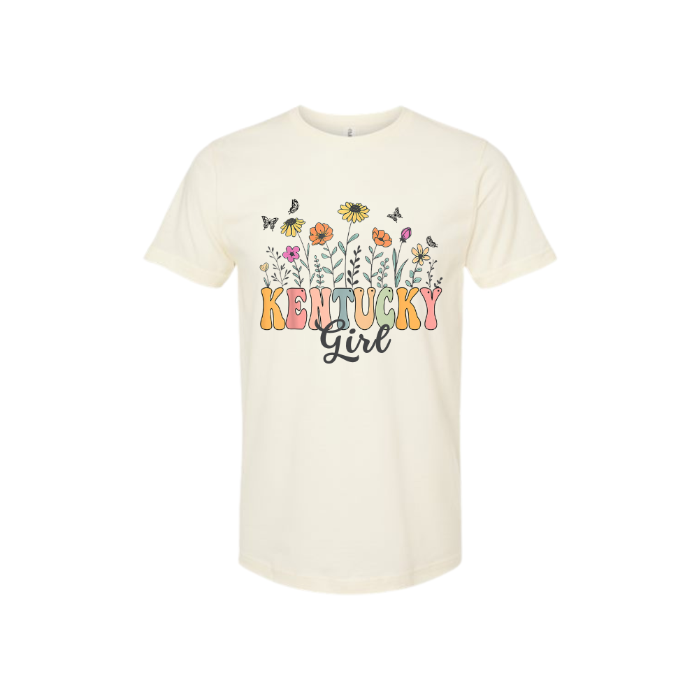 This Kentucky Girl Wildflowers Youth T-Shirt is for the ones who bloom where they’re planted. Designed with bright, whimsical florals and fluttering butterflies, this tee puts a playful spin on hometown pride. The “Kentucky Girl” text in groovy retro font adds an extra dose of fun and flair. The vintage white fabric gives it a soft, worn-in look that feels like an old favorite. It’s lightweight, breathable, and perfect for those easygoing southern days. Dress it up with a cute skirt or keep it casual with denim—either way, you’ll look as fresh as a field of wildflowers. Ideal for birthdays, state pride, or just because. Every Kentucky girl deserves a tee that’s as bright and beautiful as she is!