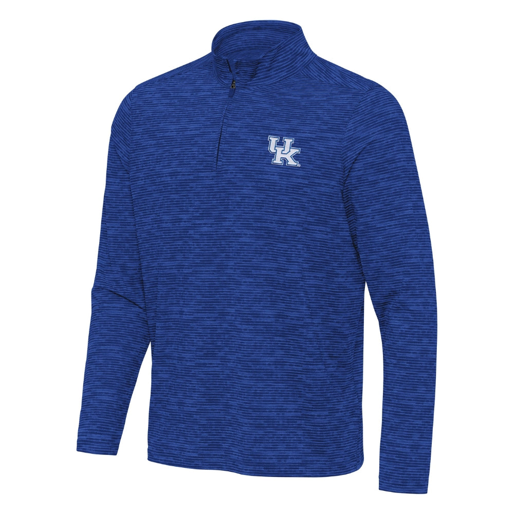 The UK Interlock Determined Quarter Zip Pullover is the ultimate layer for Wildcats fans who want style and performance. Crafted with moisture-wicking fabric, it helps regulate body temperature while keeping you dry. The sleek quarter-zip closure offers a modern, athletic look and easy on-and-off wearability. A high-quality embroidered UK Interlock logo makes a bold statement of team pride. With stretchable, lightweight material, this pullover provides a comfortable and flexible fit. The soft interior lining delivers all-day warmth without the bulk. Perfect for game days, training sessions, or casual outings, this pullover ensures you stay sharp and comfortable.