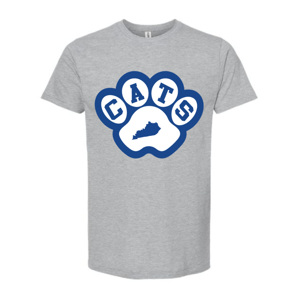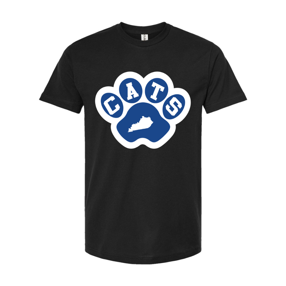 Embrace your Wildcat identity with the State and CATS in Paw T-Shirt, a design that combines state pride with team allegiance. The graphic features a state silhouette in bold letters, with "CATS" inside a paw print, symbolizing the strength and unity of the Kentucky Wildcats. Its relaxed fit ensures comfort during extended wear. Whether you're at a game, tailgate, or casual outing, this t-shirt is a standout choice.