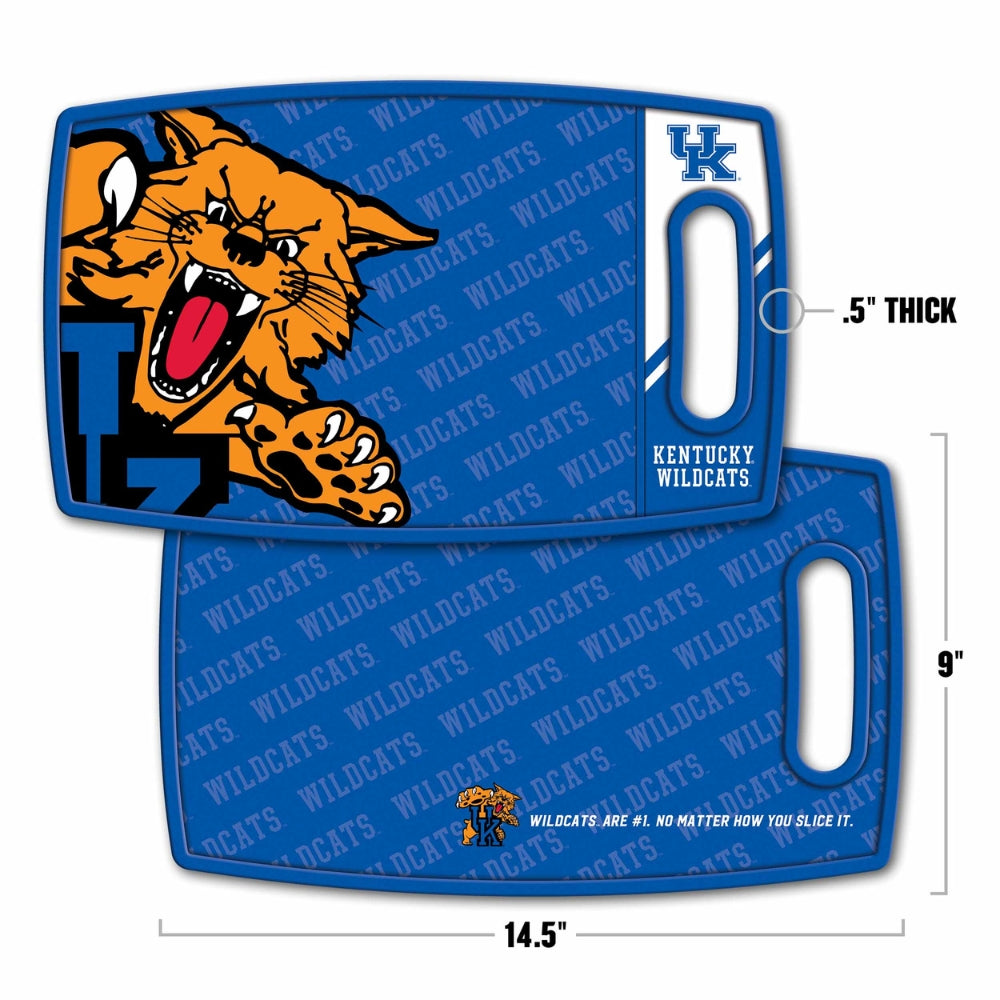 Muestra tu orgullo por los Kentucky Wildcats mientras preparas tus comidas con la tabla de cortar con la mascota de los Kentucky Wildcats. Fabricada con plástico duradero y de alta calidad, esta tabla de cortar presenta un diseño vibrante y a todo color de la mascota de los Wildcats que resiste las manchas y los olores. Sus patas antideslizantes garantizan la estabilidad durante el uso, mientras que la superficie fácil de limpiar la convierte en una opción práctica para cualquier cocina. Perfecta para cortar, picar y servir, esta tabla de cortar también es un excelente regalo para los fanáticos que desean darle un toque de espíritu de equipo a sus aventuras culinarias. Como dice esta tabla de cortar: "¡Los Wildcats son los n.° 1, sin importar cómo los cortes!"