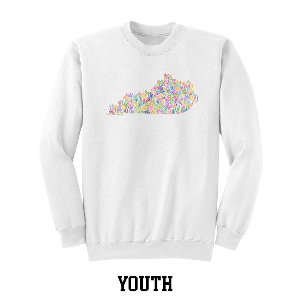 ¡Celebre todos los hermosos condados de Kentucky con esta divertida sudadera de cuello redondo para jóvenes KY Colorful Counties!