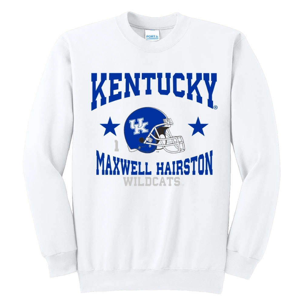 Muestra tu orgullo por los Wildcats con la camiseta de cuello redondo Globetrotting de Maxwell Hairston, una prenda destacada para cualquier fanático del fútbol del Reino Unido. Esta camiseta de cuello redondo resalta el poder estelar de Maxwell Hairston con un diseño audaz que presenta su nombre y número junto con un llamativo gráfico de casco de fútbol del Reino Unido. Fabricada con una mezcla de algodón y poliéster al 50 %, esta camiseta de cuello redondo ofrece comodidad y estilo, lo que la hace perfecta para los días de juego, los portones traseros o el uso diario.