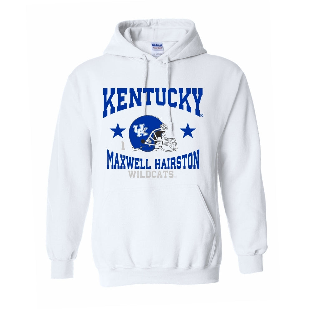 Muestra tu orgullo por los Wildcats con la sudadera con capucha Globetrotting de Maxwell Hairston, una prenda destacada para cualquier fanático del fútbol del Reino Unido. Esta sudadera con capucha resalta el poder estelar de Maxwell Hairston con un diseño audaz que presenta su nombre y número junto con un llamativo gráfico de casco de fútbol del Reino Unido. Fabricada con un material de mezcla de algodón y poliéster 50/50, esta sudadera con capucha ofrece comodidad y estilo, lo que la hace perfecta para los días de juego, los portones traseros o el uso diario.
