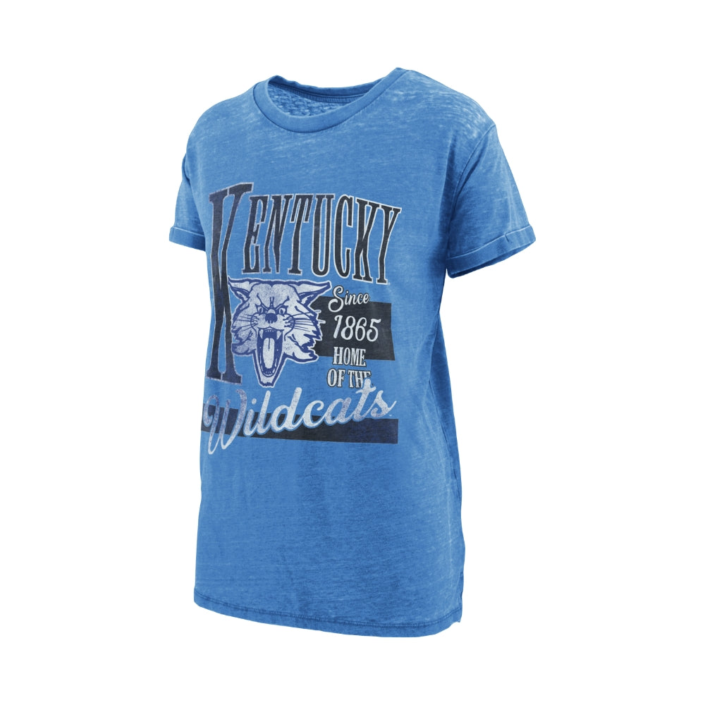Celebrate your team in style with the Kentucky, Home of the Wildcats Boyfriend Top. This loose-fit tee is perfect for fans who love a relaxed, vintage-inspired look. The bold Wildcat graphic and distressed lettering give this shirt a retro vibe that’s both trendy and timeless. Crafted from breathable, soft material, it ensures all-day comfort whether you’re at the game, out with friends, or relaxing at home. The boyfriend-style fit is effortlessly cool, making it a versatile piece that pairs well with jeans, shorts, or leggings. Its vibrant blue color stands out, ensuring your Wildcats pride doesn’t go unnoticed. Combine fashion and fandom with this stylish and comfortable fan-favorite top.