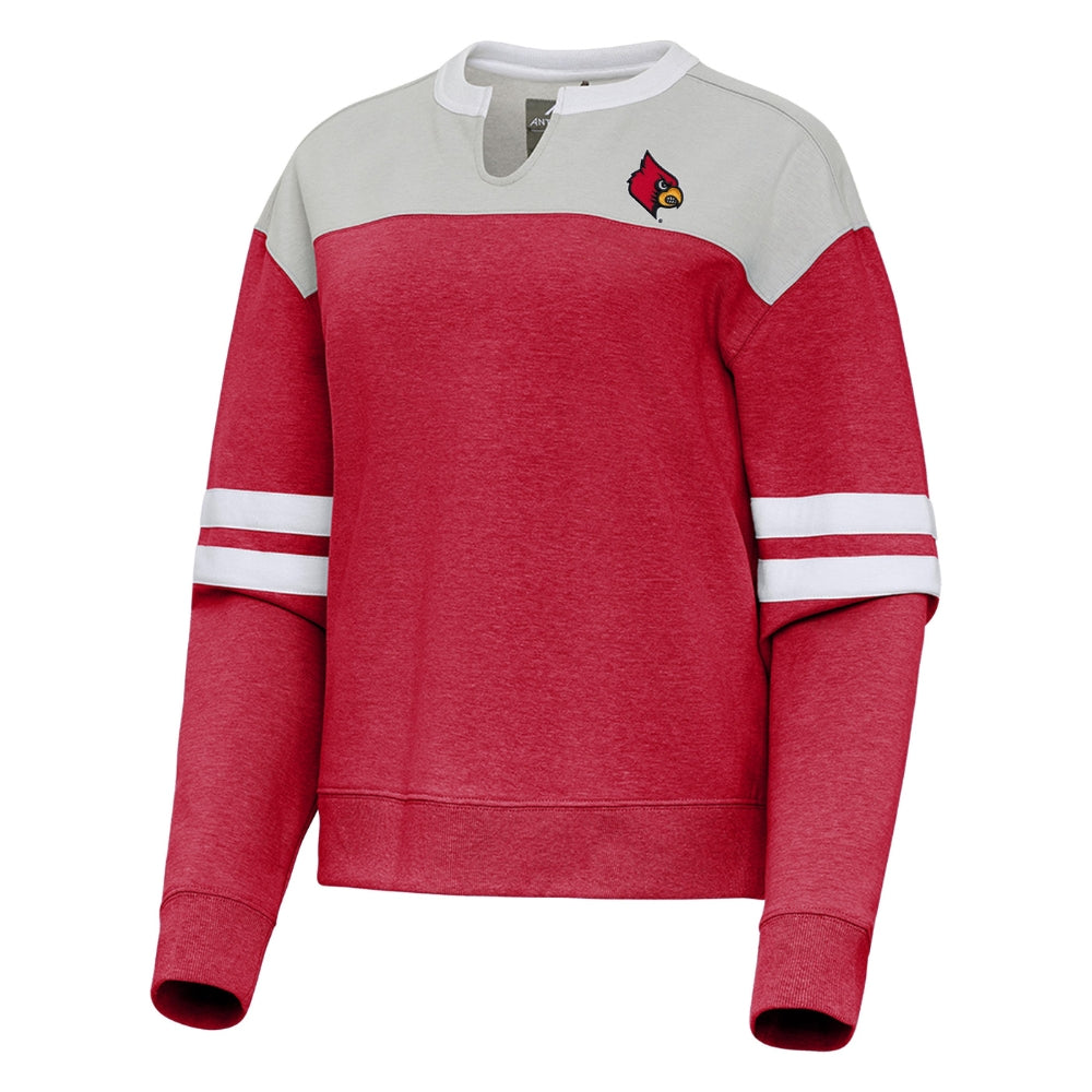 Sporty, stylish, and effortlessly cool, the Louisville Cardinals Block Sport Crewneck is a wardrobe staple. Its red and grey color-blocked design creates a sleek and modern contrast. The addition of athletic stripes on the arms enhances its sporty vibe, making it perfect for casual outings or activewear. The split crewneck neckline provides a fresh take on the classic crewneck, ensuring comfort and easy wear. Made from high-quality fabric, this sweatshirt offers a soft yet structured fit that lasts. The iconic Cardinals mascot logo subtly placed on the chest adds an understated touch of branding. Pair it with joggers, jeans, or shorts for a refined, sporty aesthetic.