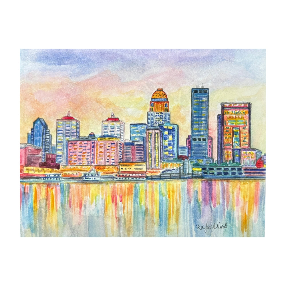 Experience the stunning beauty of Louisville at night with this beautiful watercolor print of the skyline. The vibrant colors and fluid brushwork create a mesmerizing depiction of the city's lights reflecting off the water, capturing its unique charm and energy. Perfect for enhancing any home or office decor, this piece adds a touch of sophistication to your space. It also makes a thoughtful gift for friends and family who appreciate art and urban landscapes. Celebrate the allure of Louisville every day with this striking artwork!