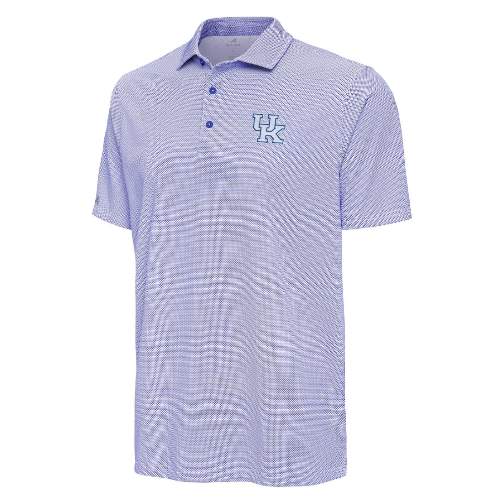 Upgrade your game day wardrobe with the UK Interlock Pave Polo, designed for ultimate comfort and style. This moisture-wicking, breathable polo ensures you stay cool no matter where the day takes you. The royal-and-white woven micro-pattern adds a touch of sophistication, making it perfect for both casual and dressier occasions. A high-quality embroidered UK logo proudly displays your team pride. The three-button placket and structured collar enhance its polished look. With a comfortable athletic fit, it provides ease of movement for any activity. Pair it with jeans, chinos, or shorts for a versatile, fan-friendly outfit.